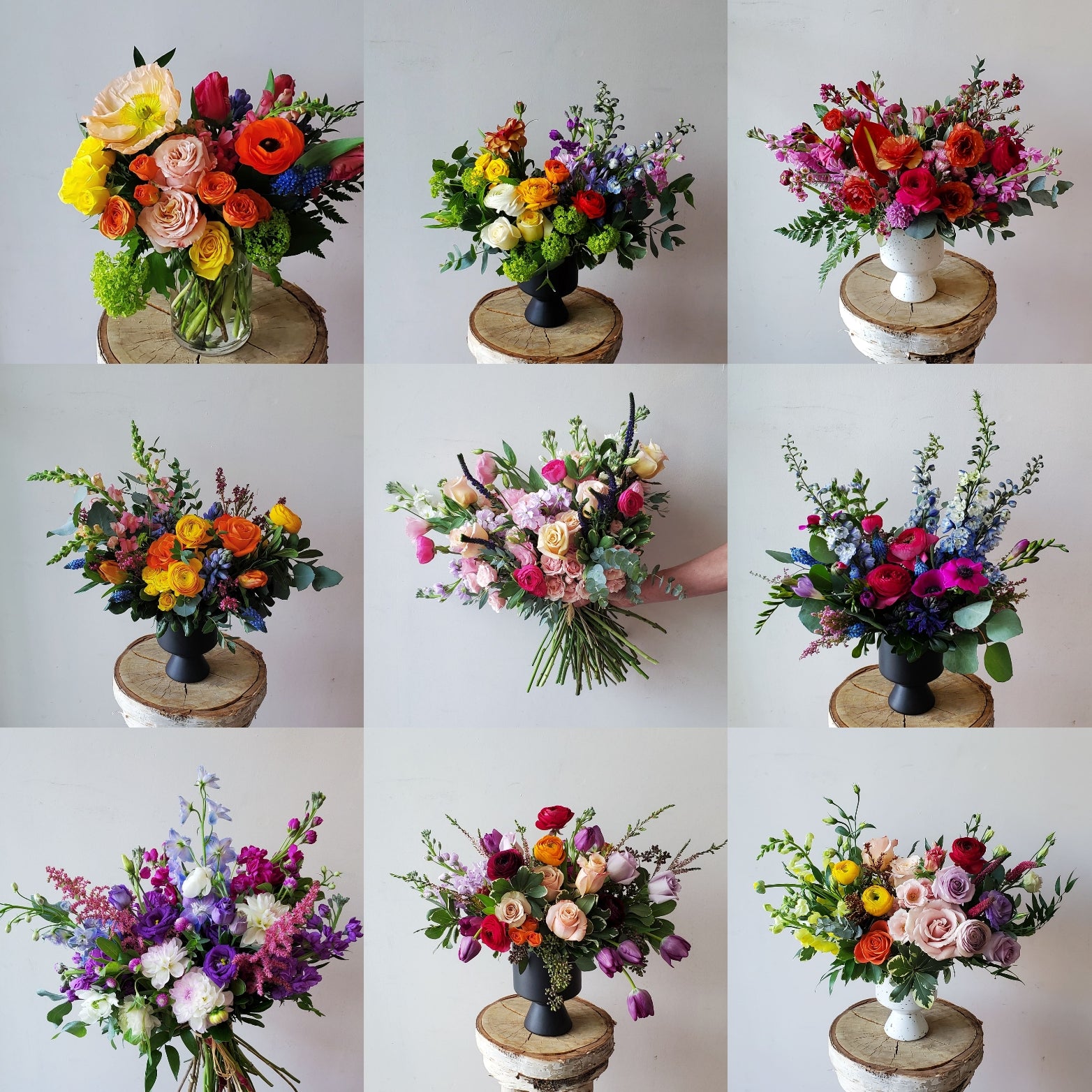 *Please note, the photos are examples of our signature shape, size and potential colour palettes. Your arrangement will not be a duplicate of the photos shown.